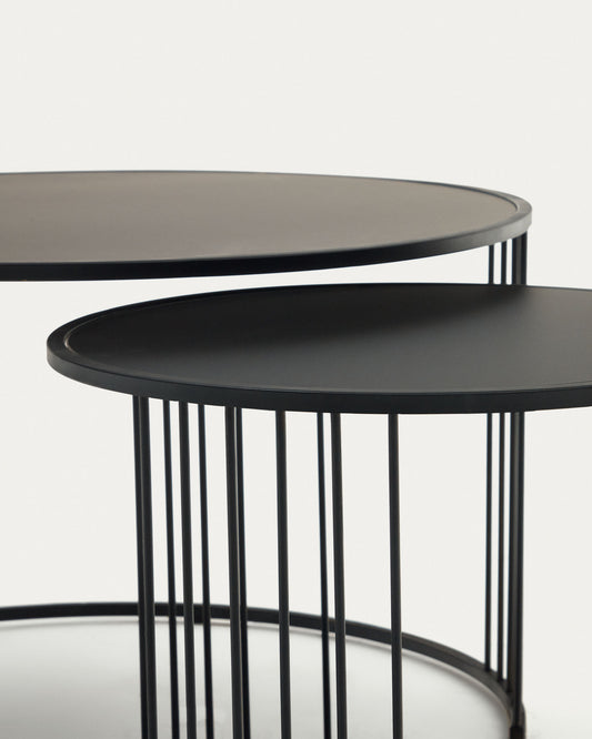 Hadar set od 2 bočna stola od kaljenog stakla i metala sa mat crnom završnom obradom, Ø 75cm / Ø 45cm