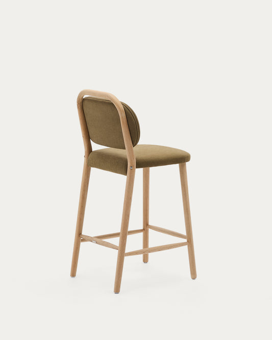 Helda stolica od zelenog ženila i punog hrastovog drveta FSC Mik Credit 65 cm