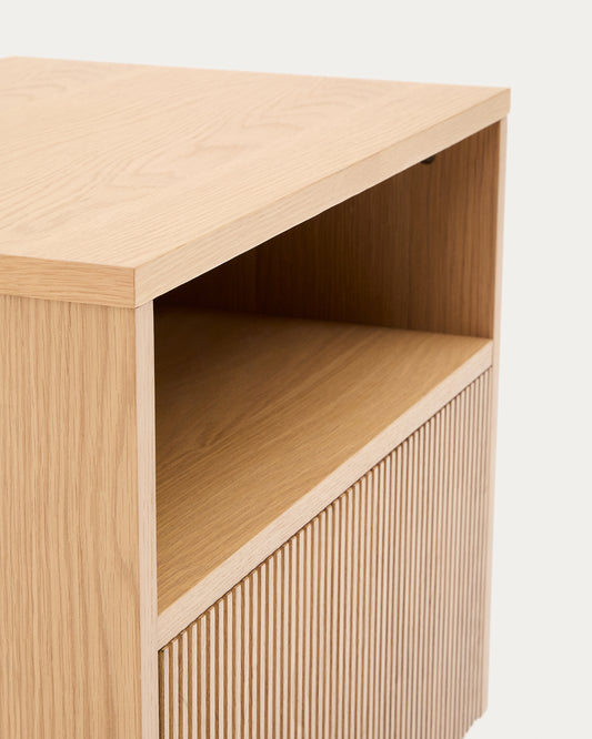 - Noćni ormarić od hrastovog furnira sa providnim prostorom za odlaganje.