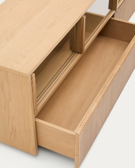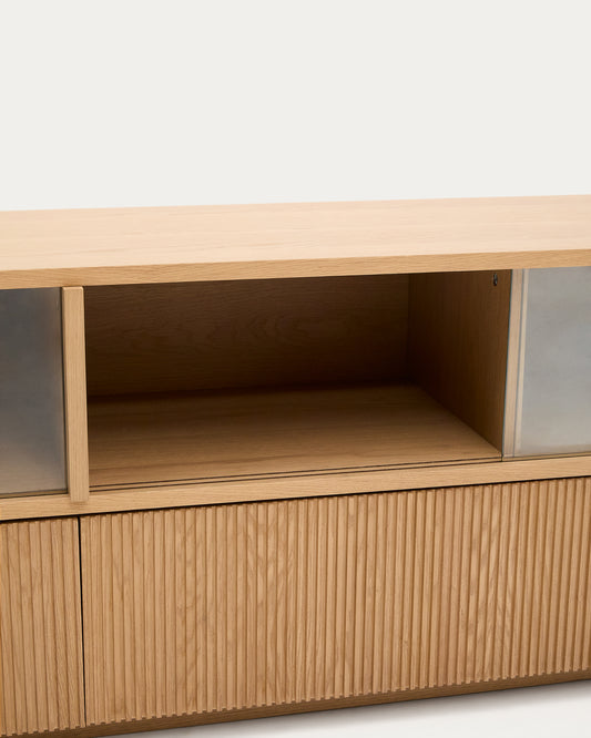 Helvine tV stalak 4 vrata i 2 fioke hrastov furnir i kaljeno staklo, 200 x 54 cm FSC 100%