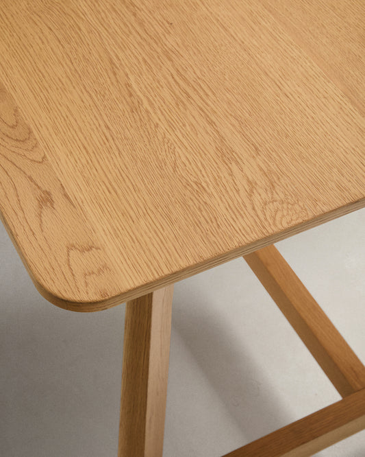 - Stol sa pločom od hrastovog furnira sa završnom obradom prirodnog tona, što omogućava da se ceni tekstura i zrno drveta.