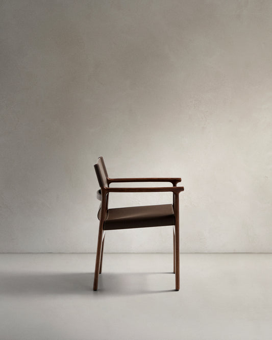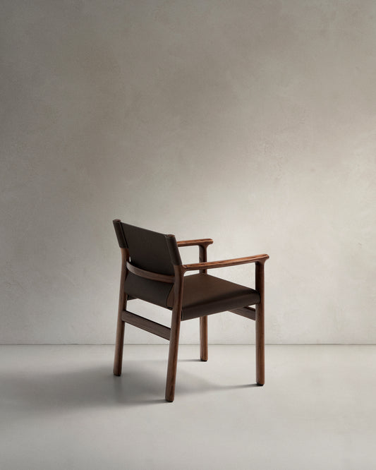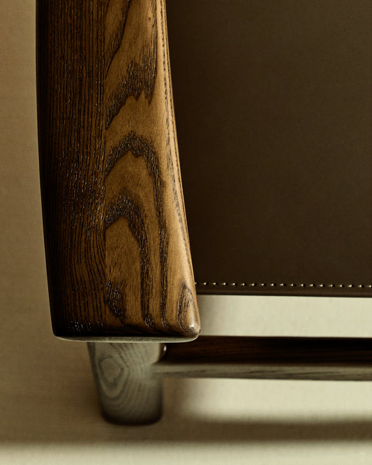 Jan stolica od tamno braon recikliranih kožnih vlakana i FSC 100% punog jasenovog drveta sa završnom obradom u boji oraha