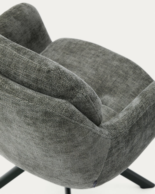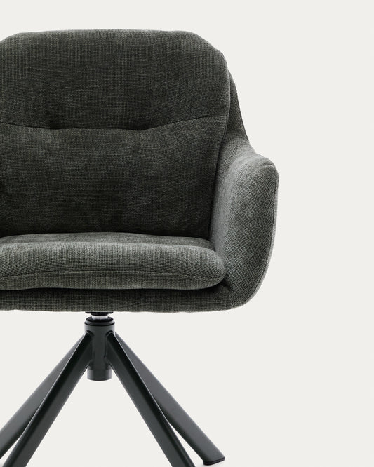 - Okretna stolica sa naslonima za ruke tapacirana mekim, čvrsto pletenim ženilom.