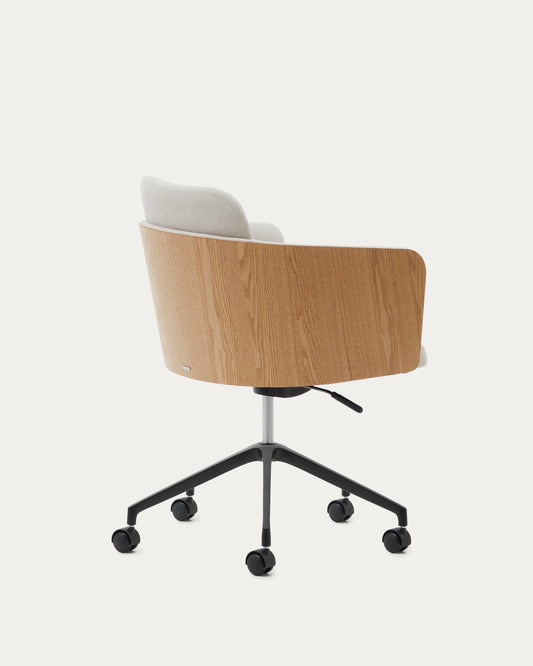 Madai radna stolica od bež ženila i jasenovog furnira sa prirodnom završnom obradom FSC Mik Credit