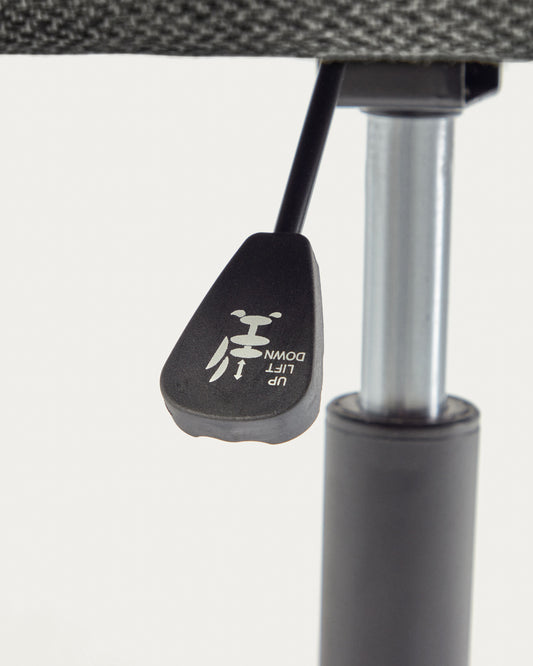 - Okretna stolica sa podesivom visinom, mat crnim čeličnim okvirom i točkovima koji su pogodni za drvene podove.