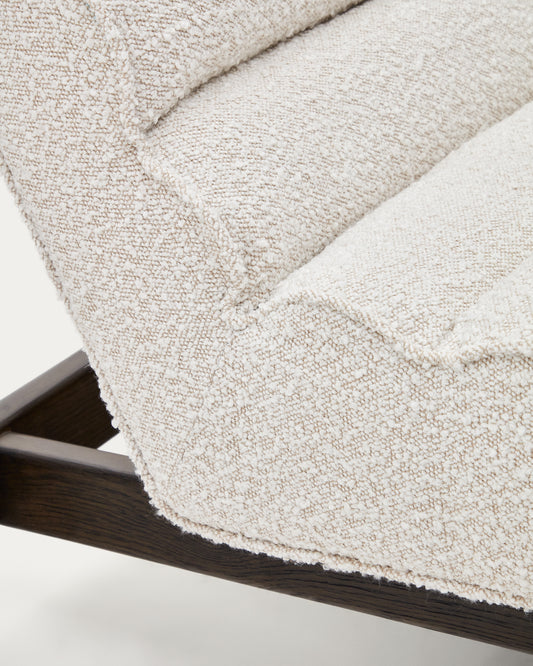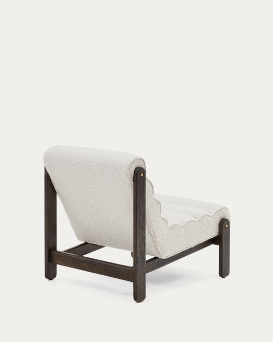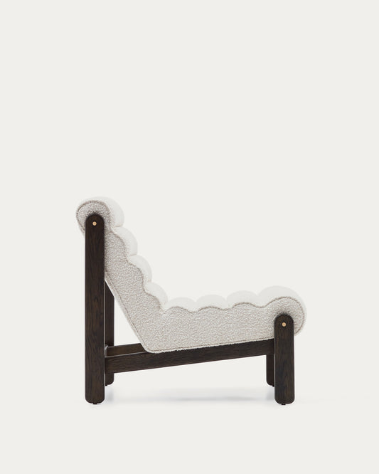 Magira fotelja od belog buklea i punog hrastovog drveta sa tamnom završnom obradom