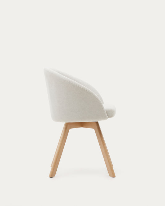 Marvin bež okretna stolica od šenila sa nogama od punog bukovog drveta u prirodnoj završnoj obradi FSC 100%