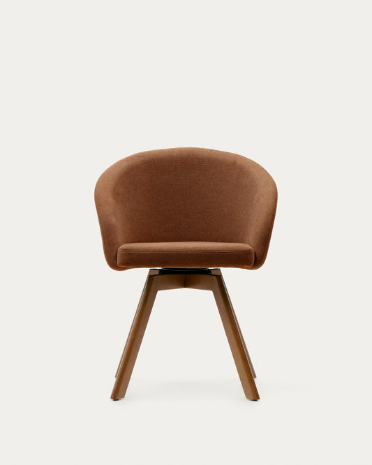 Marvin okretna stolica braon šenil sa nogama od punog bukovog drveta sa završnom obradom od oraha FSC 100%
