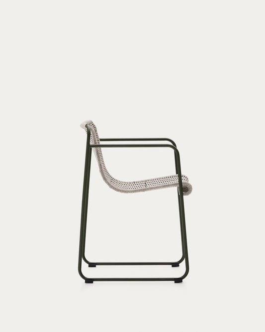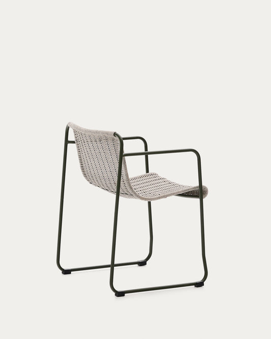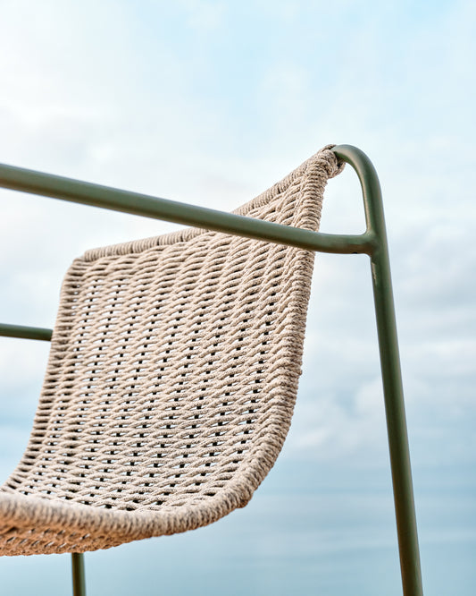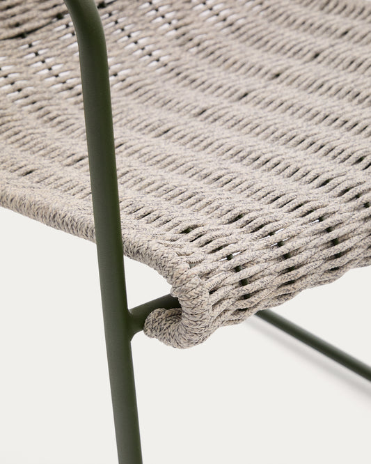 Maurina stolica od zelenog pocinkovanog čelika i ekru i sivog užeta