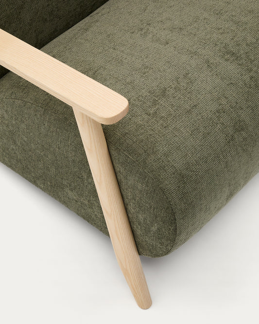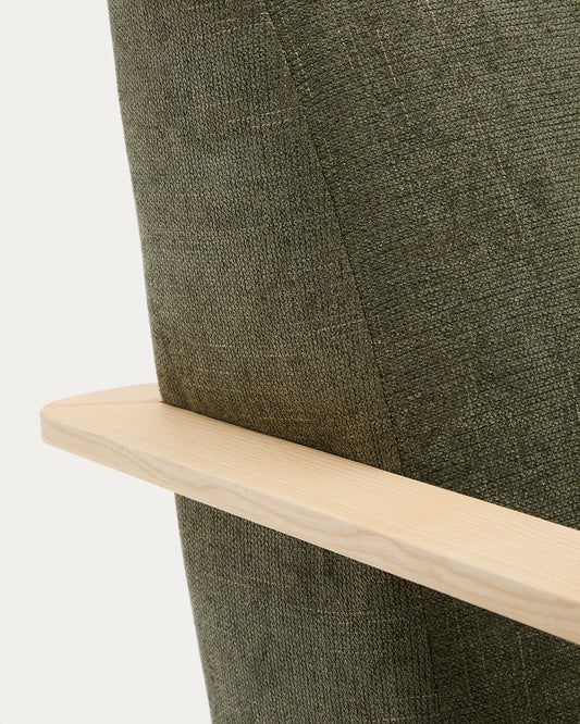 Meghan fotelja od zelenog šenila i sa masivnim bukovim drvetom u prirodnoj završnoj obradi FSC Mik Credit