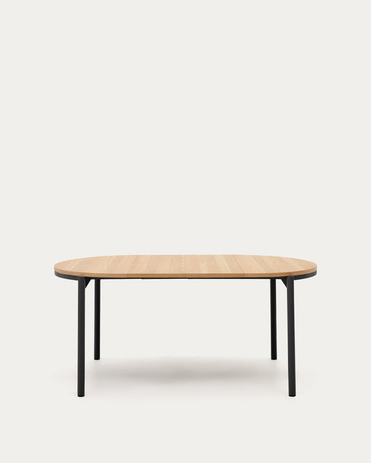 Montuiri okrugli sto na razvlačenje u hrastovom furniru i čeličnim nogama u crnoj boji, Ø90(170) cm