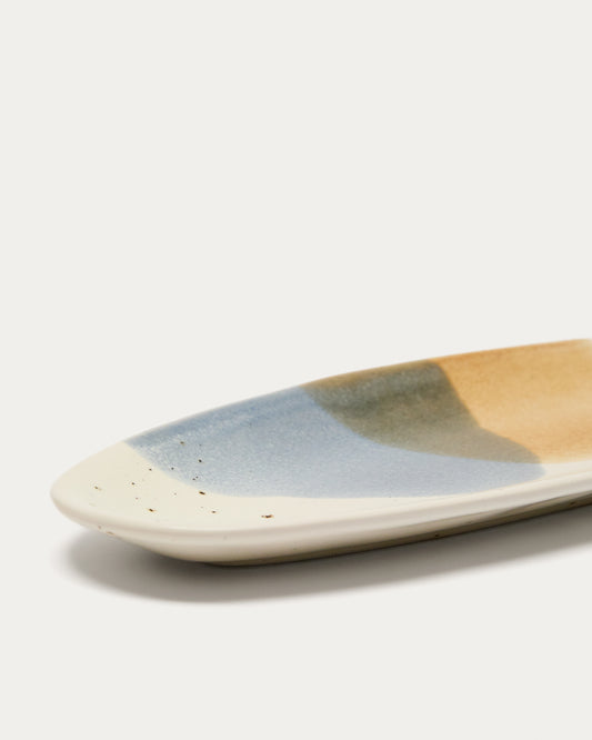 • Keramička posuda u beloj, plavoj i braon boji.