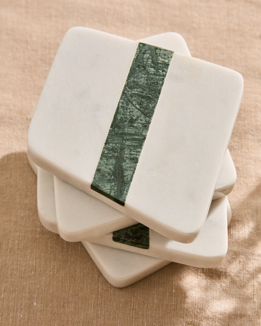 Nira set od 4 podmetača od belog i zelenog mermera