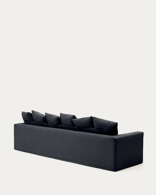 Nora sofa sa 4 sedišta sa poklopcem koji se skida i sivim antracit platnenim i pamučnim jastucima 340 cm
