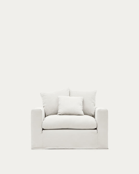 - Navlaka za fotelju od 140 cm u ekru boji, izrađena od prirodnog pamuka i lanenog platna.
