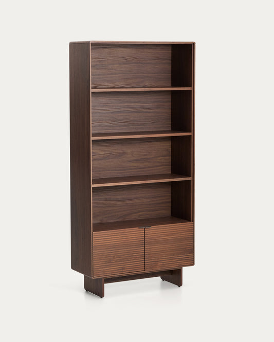 - Polica od furnira od oraha sa tri police i dve vrata.