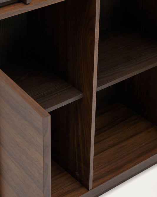 - Gornji deo sa vratima i policama od kaljenog stakla i donji deo sa vratima i policama od orahovog furnira.