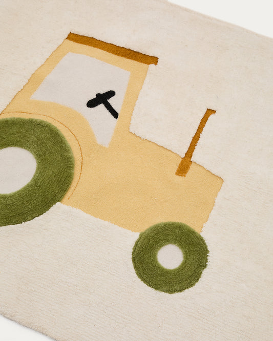 Pecky bež, 100% pamuk tepih sa traktorom, 90 x 150 cm