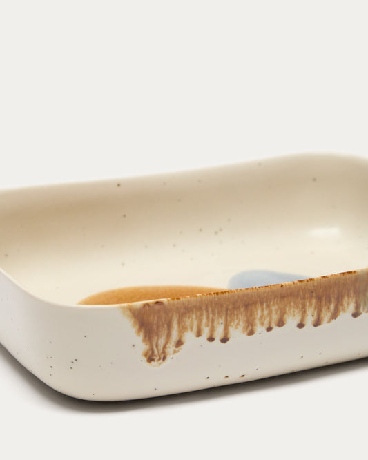 - Keramička posuda za rernu u beloj, plavoj i braon boji.