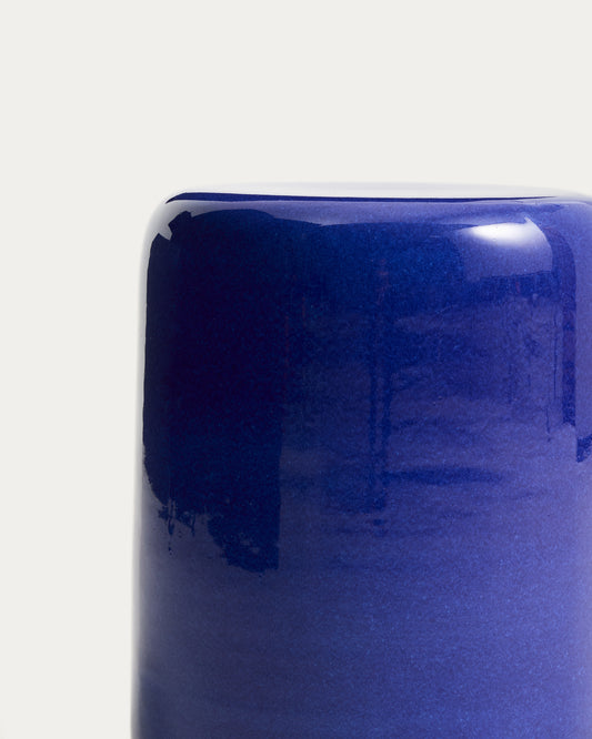 Spoljašnji pomoćni sto Mesquida od keramike sa glaziranim plavim završetkom Ø 35 cm