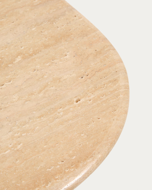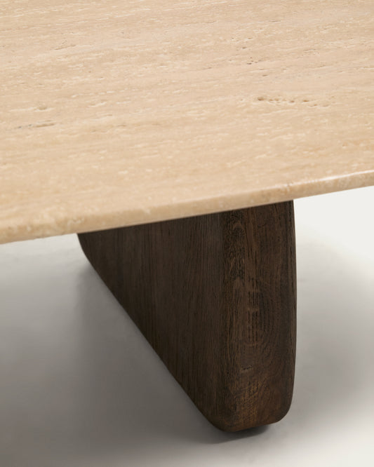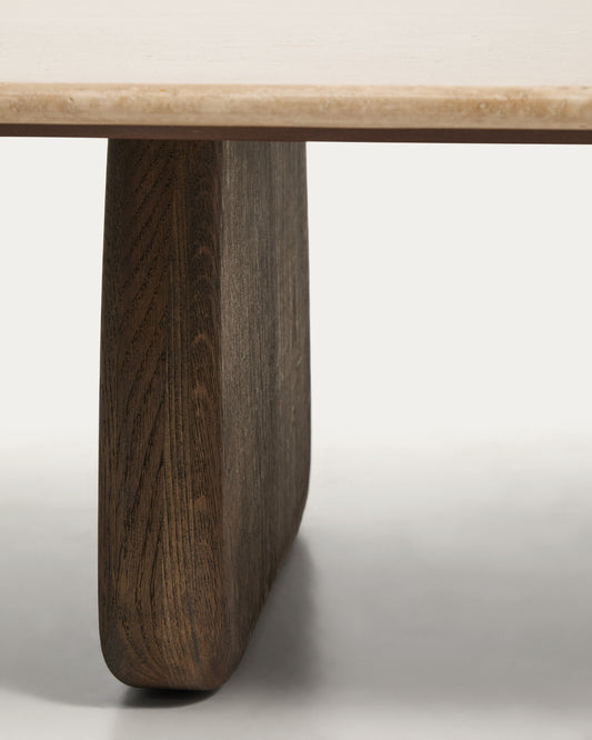 Sto za kafu Pirita od bež travertina i nogara od masivnog hrastovog drveta, tamna završna obrada 147 x 65 cm FSC 100%