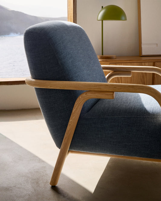 Sylo plava fotelja od punog jasenovog drveta, FSC 100%