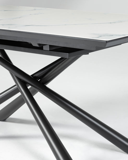 theone porcelanski sto na razvlačenje u belim i crnim čeličnim nogama 160 (210) x 90 cm