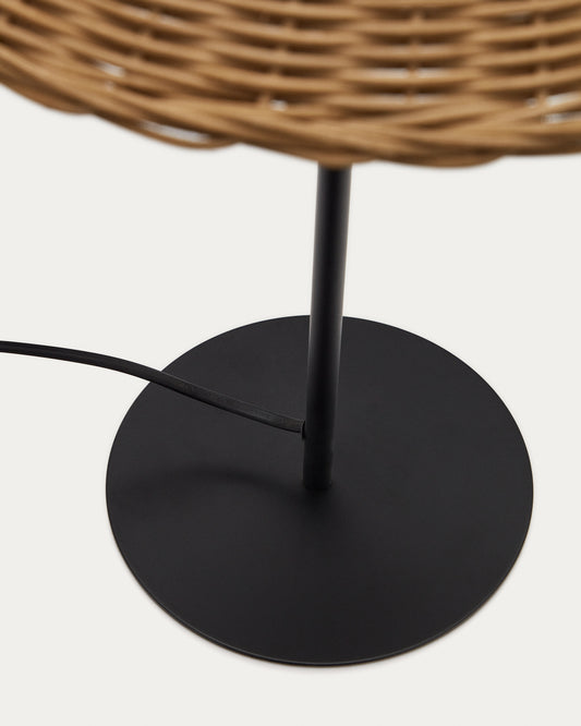 - Metalna stona lampa sa crnom završnom obradom i sjenilom od prirodnog ratana.
