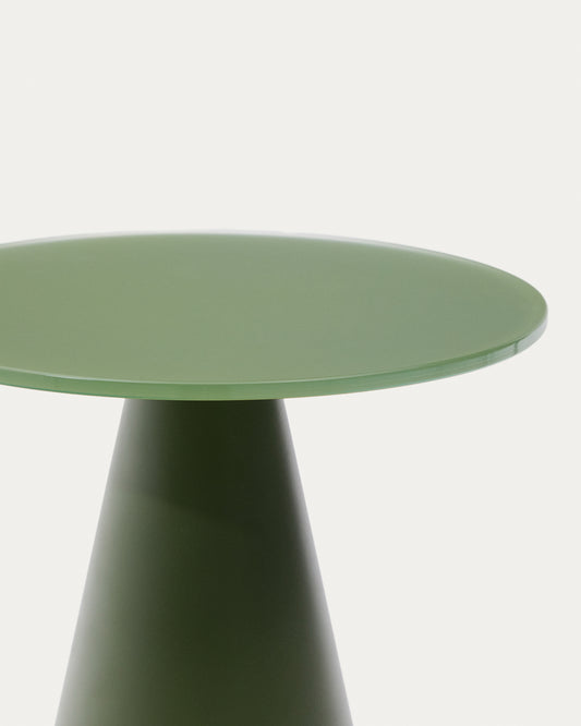 Wilshire bočni sto sa matiranim kaljenim staklom i mat zeleno obojenim čeličnim završetkom Ø30cm