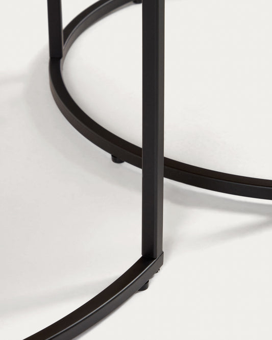 Yoana set od 2 bočna stola za gnežđenje sa hrastovim furnirom i crnim metalom, Ø 80 cm / Ø 50 cm